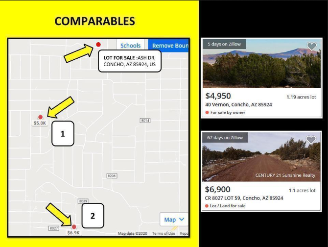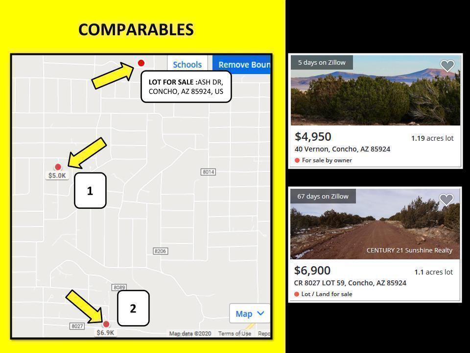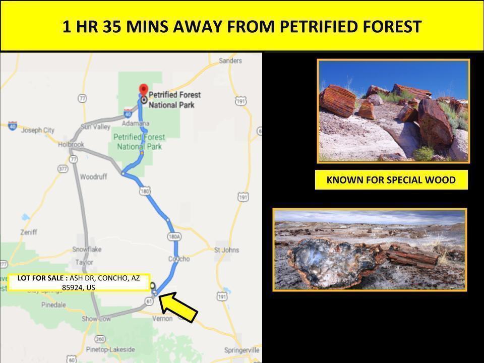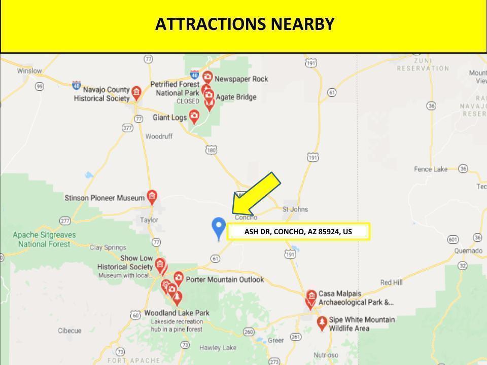 This lot for sale measures 1.16 acres, and is located in majestic Apache county. Apache County is home to the Petrified National Park, the Painted Desert, and the Sitgreaves National Forest and has become a major destination for investors looking to expand their real estate holdings outside of the Phoenix metro area. This property is situated on the corner of Ash Dr just 14.9 miles southwest of Concho, AZ. Tiny Concho retain its quiet, rural roots in a surprisingly diverse community. Sometimes called Old Concho, known for their traditions and folklore. In the newer Concho Valley, established in 1971, boating and fishing are popular pastimes at Concho.